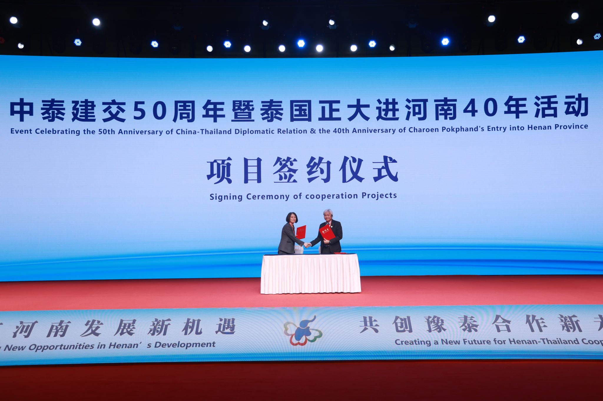 活动现场,泰国正大回顾了40年来与河南的合作历程,洛阳市、开封市、漯河市分别进行市情推介。由天艳代表我校与泰国正大管理学院签署共建“丝路牡丹学院”合作框架协议。