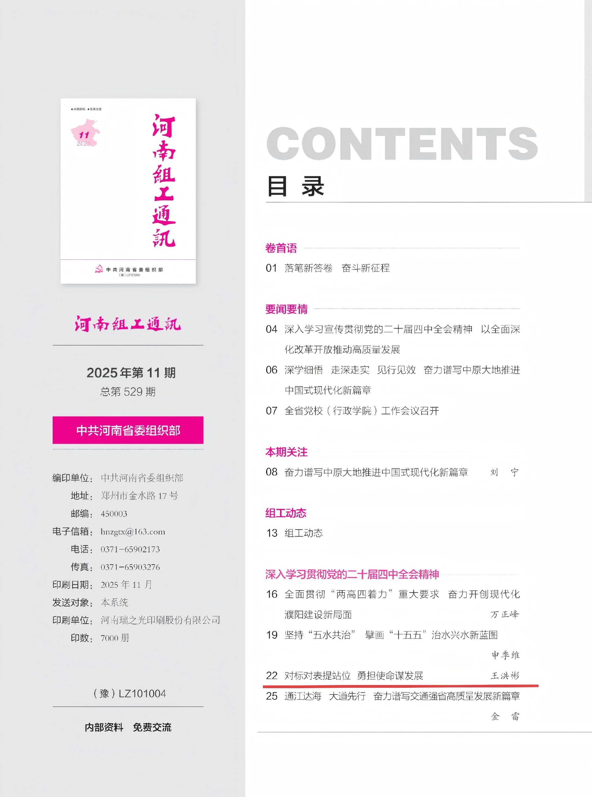 校新闻中心讯 2025年第11期《河南组工通讯》刊发我校党委书记、校长王洪彬署名文章《对标对表提站位 勇担使命谋发展》。全文如下: