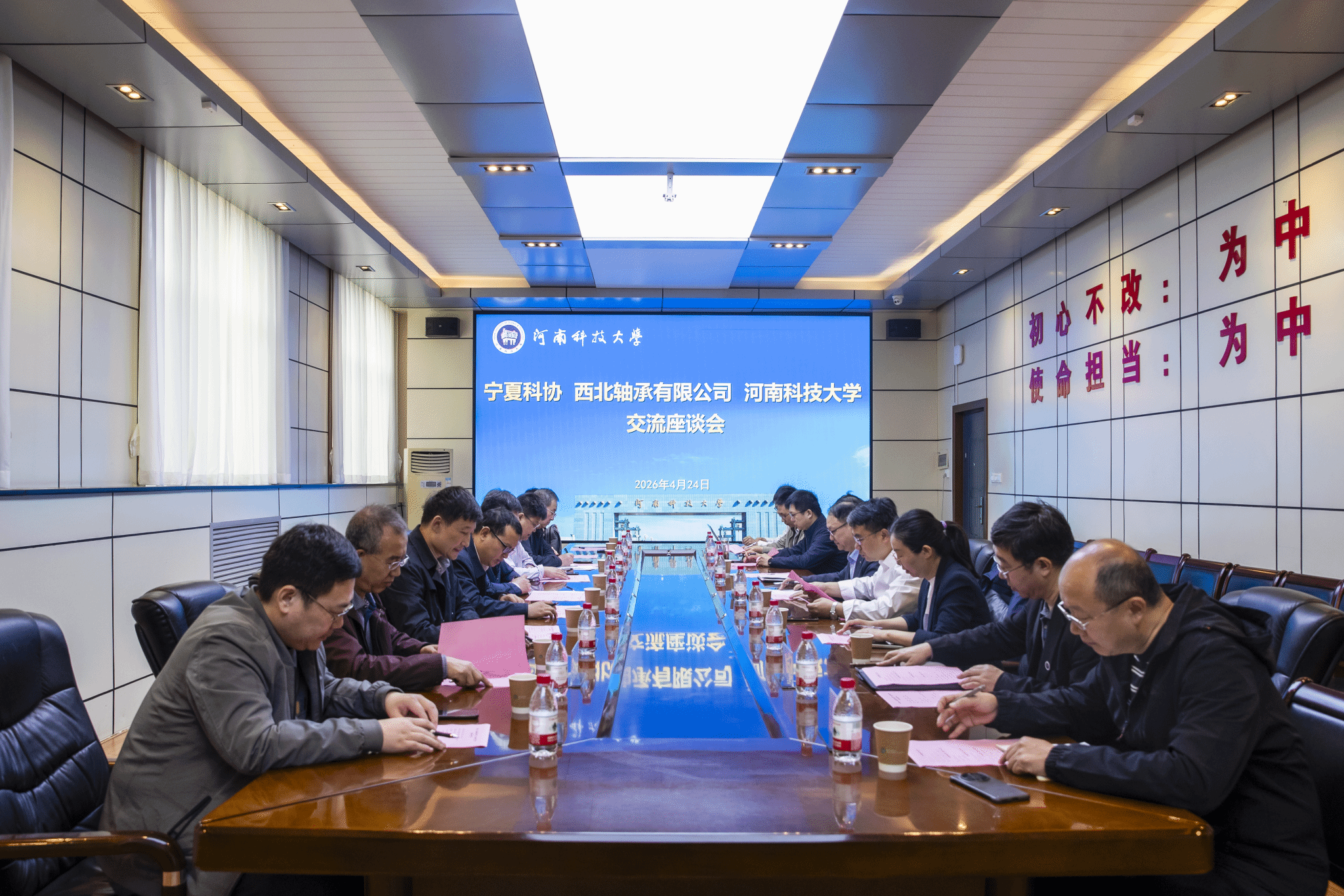 校新闻中心讯 4月24日,宁夏科协党组书记王向豫、副主席陈宏灏,西北轴承有限公司党委副书记李晓波一行来校考察交流,洛阳市科协党组成员、副主席郭建设陪同,副校长吴庆涛出席座谈会。