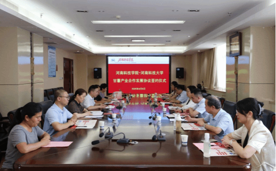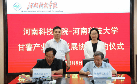 8月6日下午,河南科技学院与河南科技大学甘薯产业合作发展签约仪式在行政楼901会议室举行。河南科技学院副校长丁轲、成果转化与合作办公室、农学院等部门负责人出席签约仪式,河南科技大学副校长侯小改、河南科技大学发展规划部副部长祖恩厚等出席签约仪式,签约仪式由成果转化与合作办公室负责人主持。
