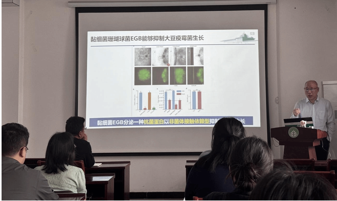 崔中利教授围绕黏细菌对大豆疫霉菌展示出的不同的互作模式,介绍其团队开展的系统研究,详细解析了关键蛋白的作用机制,同时讲解了黏细菌合成菌群的构建及其在捕食过程中的群体合作行为。